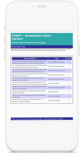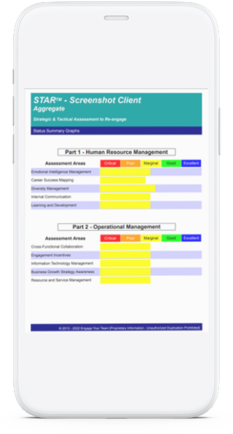 When you order Engagement Gene Survey our intelligent software compares your survey data against the standards of business performance and benchmarking improvements. Based on your current survey review score, it assigns tailored strategic and tactical actions for your immediate, current and future business objectives.